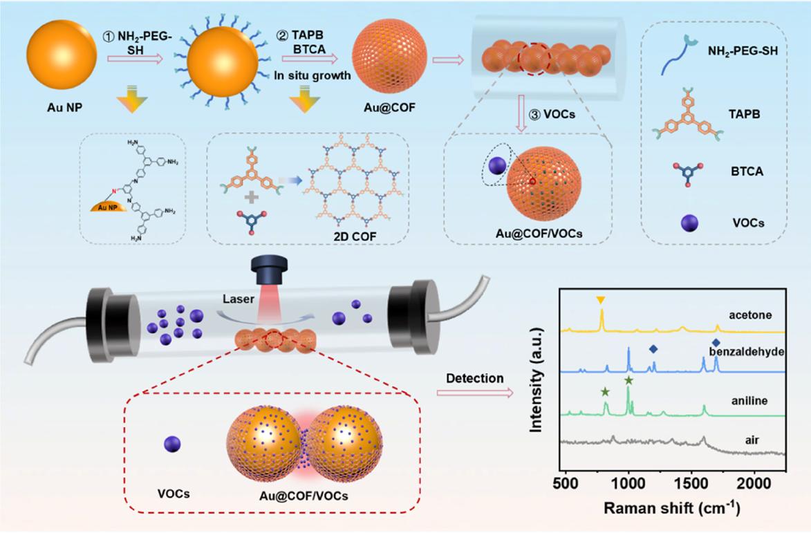 本文王琛教授課題組提出,在金納米粒子表面原位生長多孔COFs材料,利用COFs對氣體的強富集能力和納米金的等離激元共振增強效應(yīng),可大幅提高VOCs的檢測靈敏度,從而實現(xiàn)了不同VOCs的**區(qū)分和靈敏檢測。這一研究為VOCs的識別和檢測提供了一種簡單、靈敏和快速的方法,在農(nóng)業(yè)、環(huán)境和人類健康等領(lǐng)域均具有良好的應(yīng)用前景。