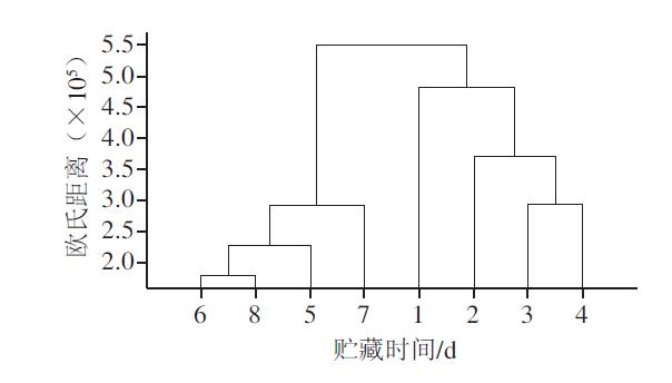 圖4 不同貯藏日特征激發(fā)波長下發(fā)射光譜表征能量值的聚類分析