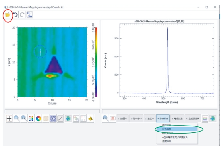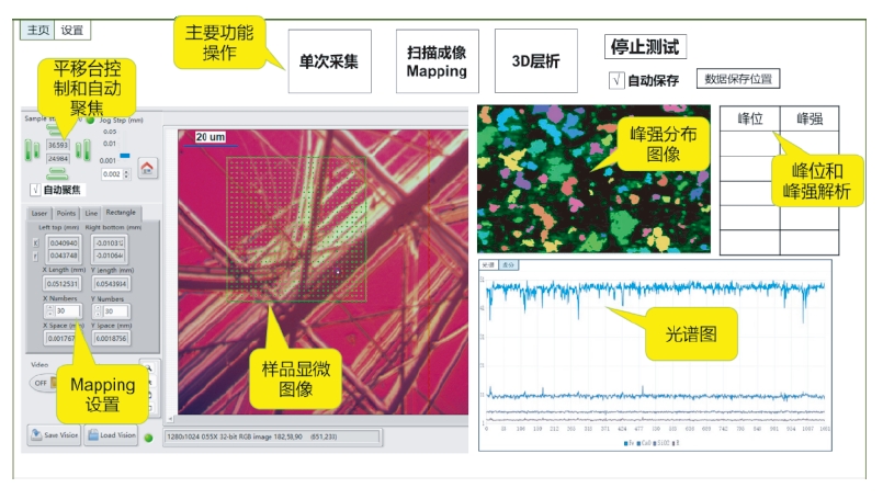 | Mapping數(shù)據(jù)分析軟件 | 可對(duì)光譜峰位、峰高、半高寬等進(jìn)行擬合。