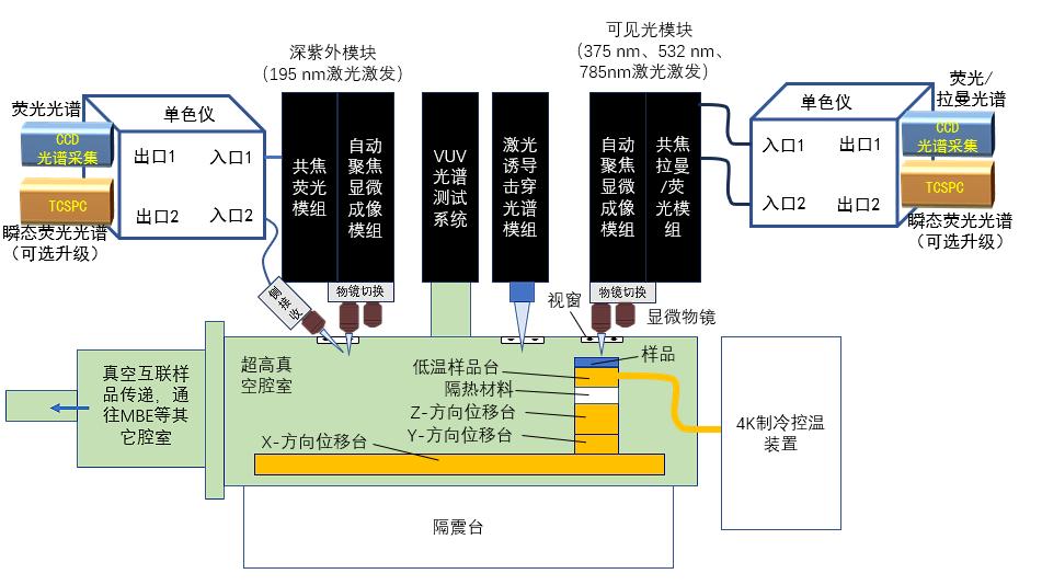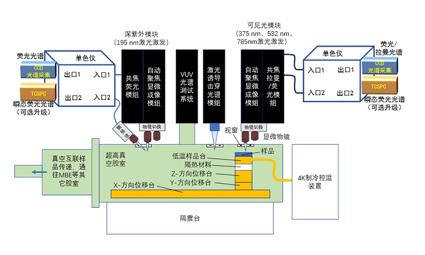 為用戶提供適配真空互聯(lián)多模組系統(tǒng)的多模組光譜測試系統(tǒng),可在超高真空低溫條件下,在同一真空腔體中實現(xiàn)如下功能: