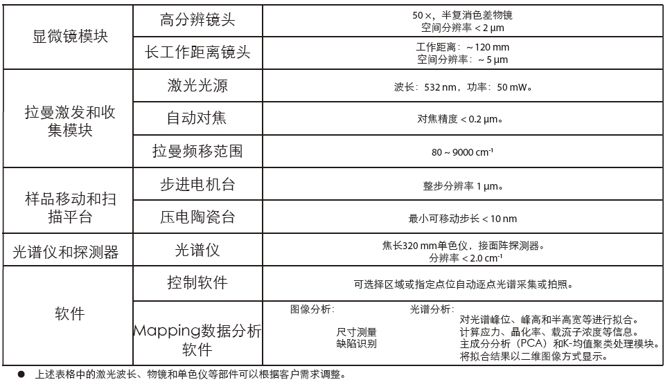 3.機械調(diào)節(jié)裝置:裝配一維電動平移臺,使整個鏡頭的焦點可沿著樣品圓盤表面平動,通過成像尋找表面的劃痕等目標,掃描光譜的分布等。裝配對焦、橫向調(diào)節(jié)和俯仰調(diào)節(jié)等手動調(diào)節(jié)維度,方便客戶將激光光斑聚焦于目標位置。