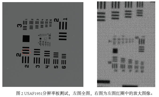 0.005mm,實測分辨率0.006mm(詳見第2.2節(jié)圖像分辨率測試)。彩色傳感器為2000萬像素1時畫幅,對應成像的范圍為17.6x11.8mm。
