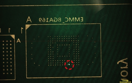圖4綠色激發(fā)光來焦到EMMC BGA169封裝的電極點陣的顯微照片