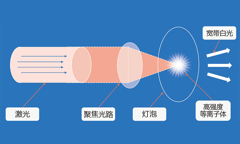 寬帶白光光源,采用激光泵浦的方式維持等離子體放電發(fā)光,避免了使用電極所帶來的種種缺陷。